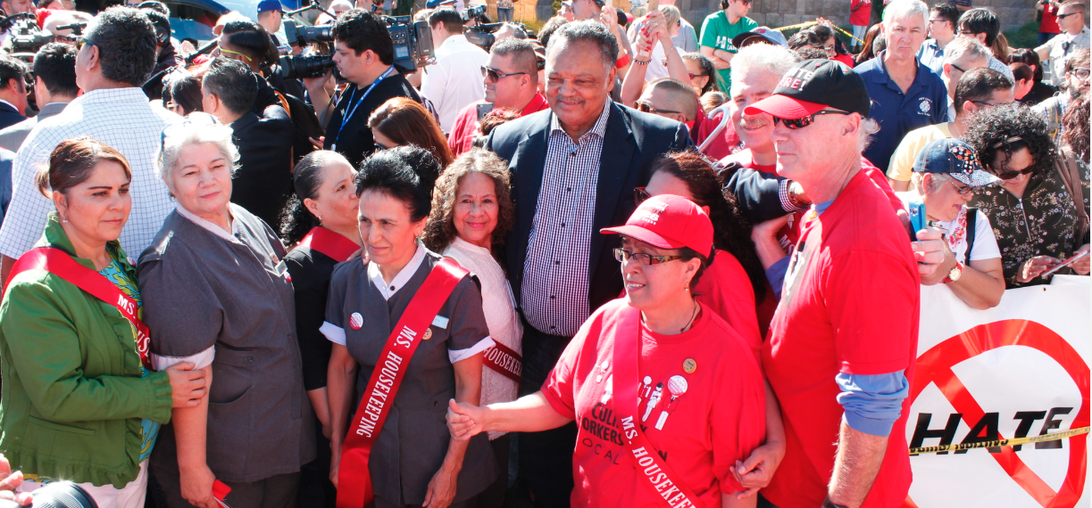We were told that we couldn’t march in the street and if we did, there would be arrests. Rev. Jackson came to Las Vegas, stood shoulder to shoulder with workers, led us on that march, and not one worker was arrested.